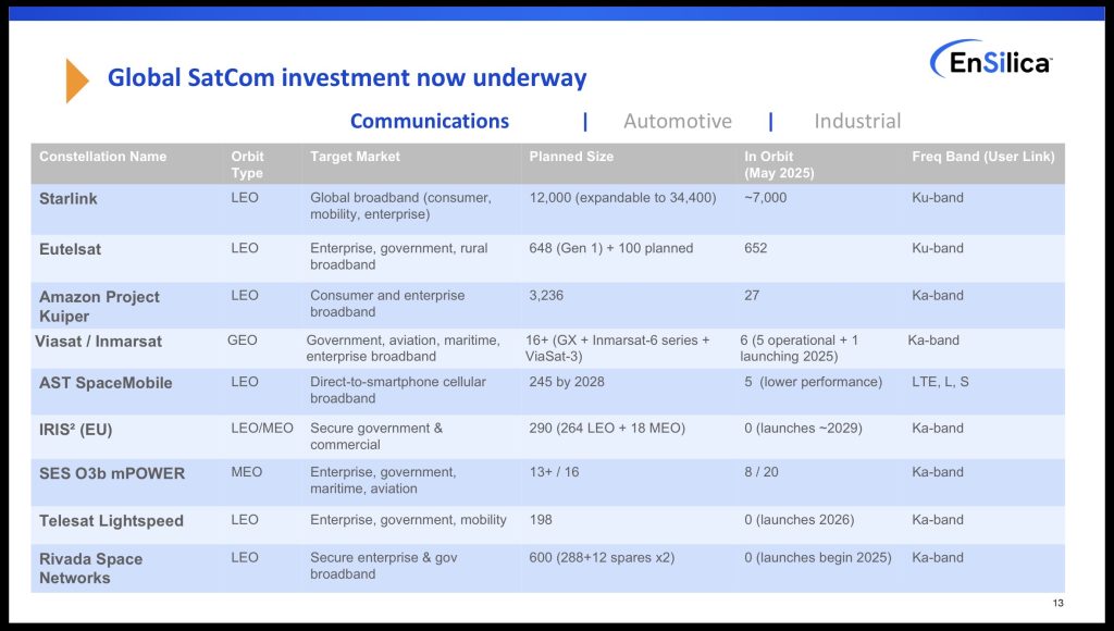 They’re reportedly seeking to go from 243 to 543 satellites. In EnSilica’s FY2025 presentation last November (see image) it looks like EnSilica were expecting 245 satellites by 2028, so another 300 or so satellites may result in a notable boost to royalties if the AST5000 chip is used.